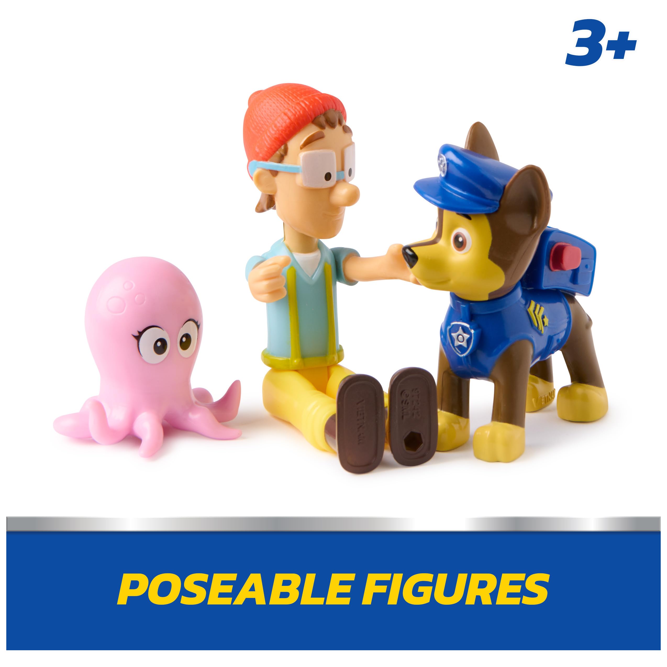 Paw Patrol, Chase & Captain Turbot Figure Pack with Baby Octopus Toy Figure, Kids Toys for Boys and Girls Ages 3 and Up
