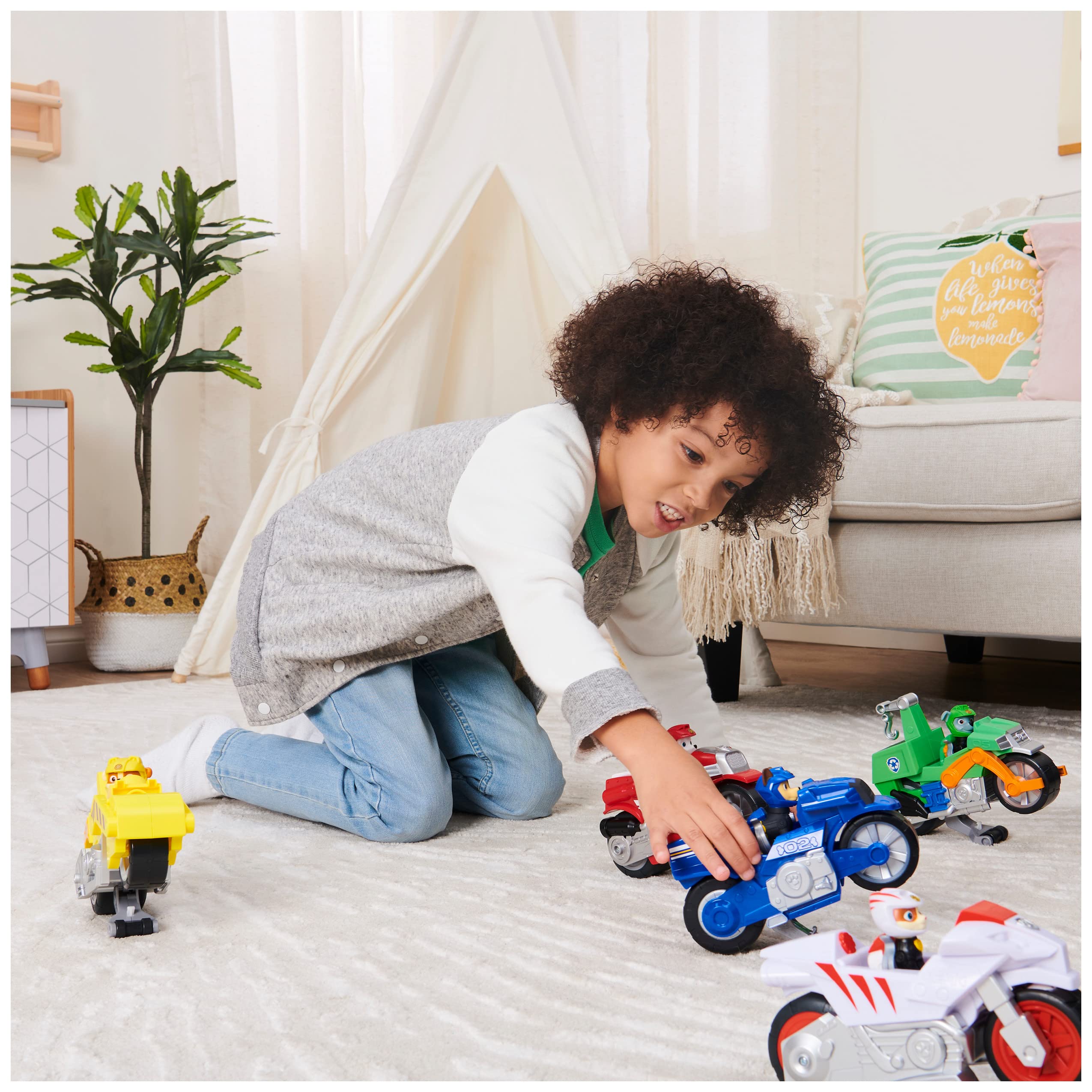 - PULL BACK TO POP WHEELIES: Pop wheelies with Chase’s Deluxe Vehicle! Pull the motorcycle back and watch it go – the vehicle races forward, popping into a wheelie while speeding to the rescue!