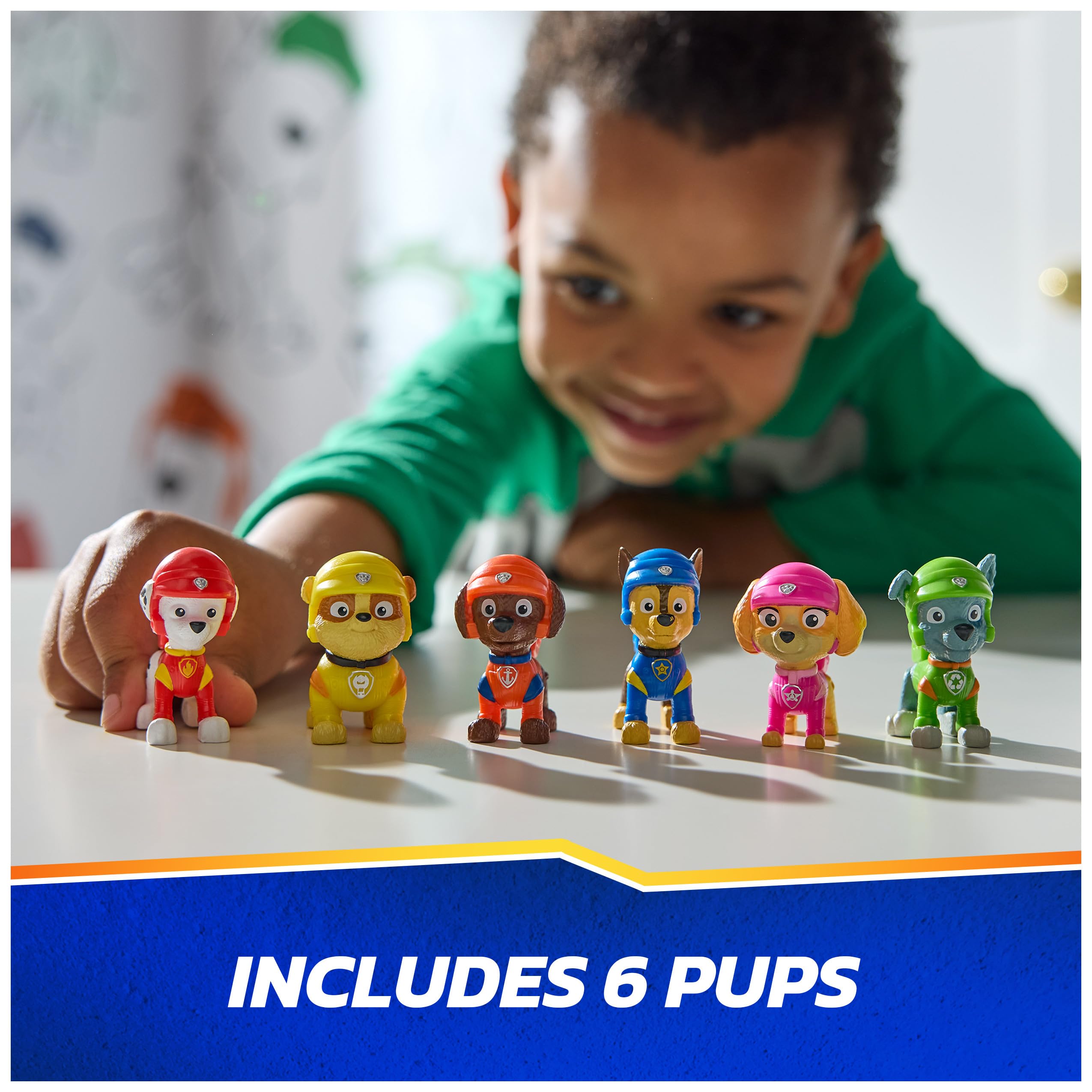 - 6 PAW PATROL FIGURES: Expand your Pup Squad Figure collection with this set of 6 play figures. Bring home Chase, Marshall, Skye, Rubble, Rocky, and Zuma for nonstop adventures
