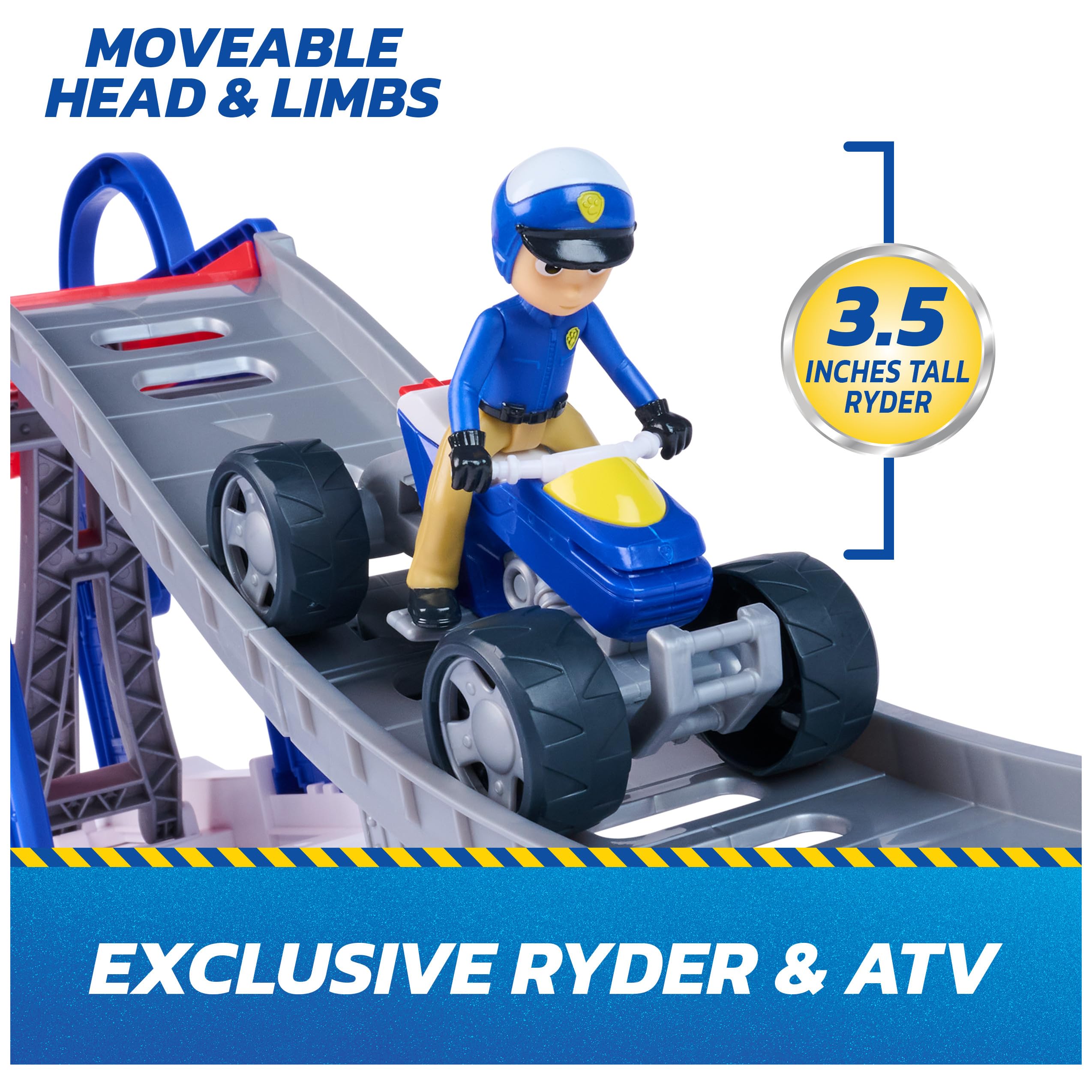 - Mission Ready ATV: Featuring authentic Seach & Rescue styling with real working wheels, race to the rescue with Ryder and all his pups (pups & vehicles sold separately)